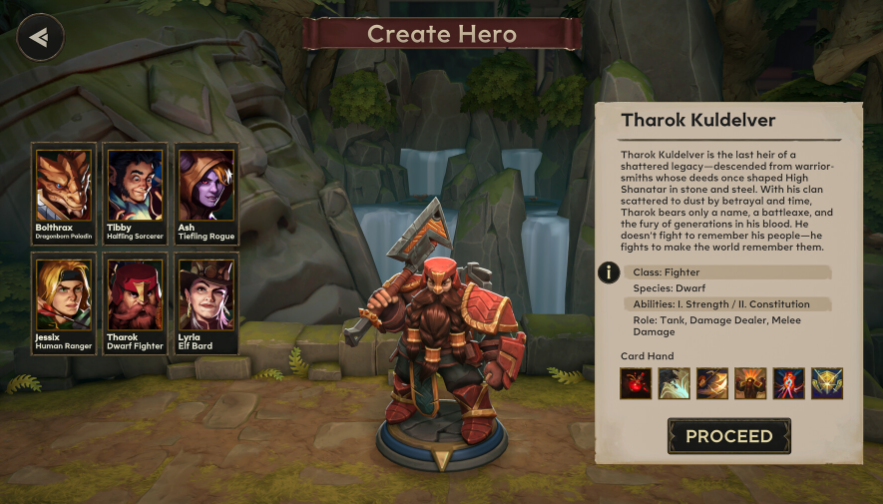 - 게임플레이 및 시스템 특징 : 이 게임은 턴제 전략 전투 방식을 채택하고 있으며, 플레이어는 카드 기반 능력과 행동을 사용해 전투를 수행합니다. 각 영웅 캐릭터는 고유한 클래스(팔라딘, 소서러, 로그 등)와 스킬이 있어서, 전투 시 역할 분담과 전략적 협력이 매우 중요합니다. 파티는 최대 4인 온라인 협동으로 구성 가능하며, 솔로 플레이도 지원되어 자기 스타일대로 진행할 수 있습니다. 스토리는 두 개의 캠페인으로 구성되어 있으며, 출시와 함께 주요 던전 및 퀘스트가 제공됩니다. D&D 세계의 룰 중 일부가 적용되어 주사위 굴림(대화, 함정, 대사 등 선택지에 D20 주사위 요소)이 전투 뿐 아니라 이벤트에도 반영됩니다.