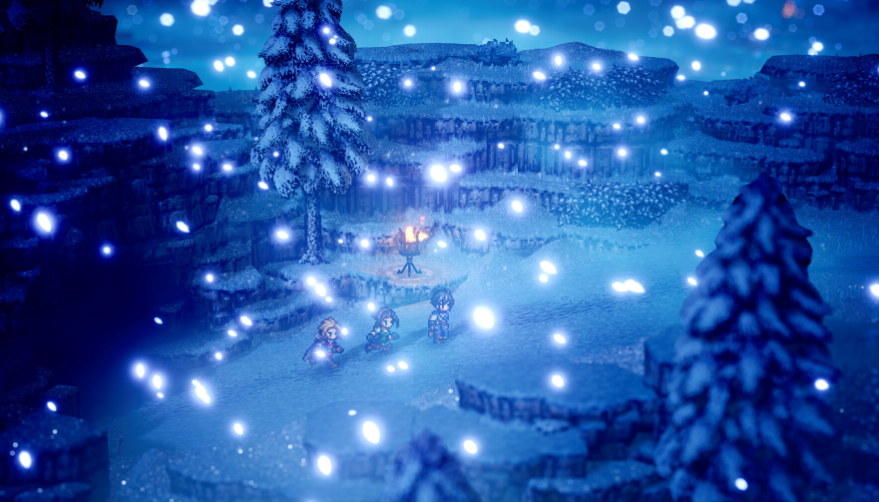 - 그래픽 및 연출 / 분위기 : HD-2D 특유의 고전 RPG + 현대 그래픽 감성이 매력입니다. 픽셀 스프라이트, 고화질 배경, 조명 효과, 3D 요소가 잘 어우러져서 옛 감성과 세련된 시각미 둘 다 잡았습니다. 전투 연출, 스킬 사용, 필드 탐험, 마을 건설 등에서 세밀하고 감성적인 연출이 들어가 있어서 플레이와 보기 좋은 맛이 둘 다 존재합니다. 음향, 배경 음악, 효과음도 훌륭한 편이라서 JRPG 감성을 잘 살립니다.